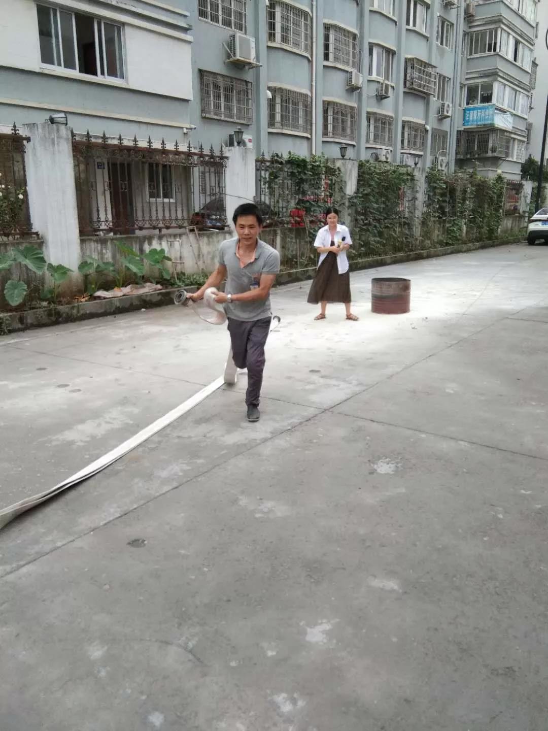 陳隆江同志講解了消防水帶的使用方法。
