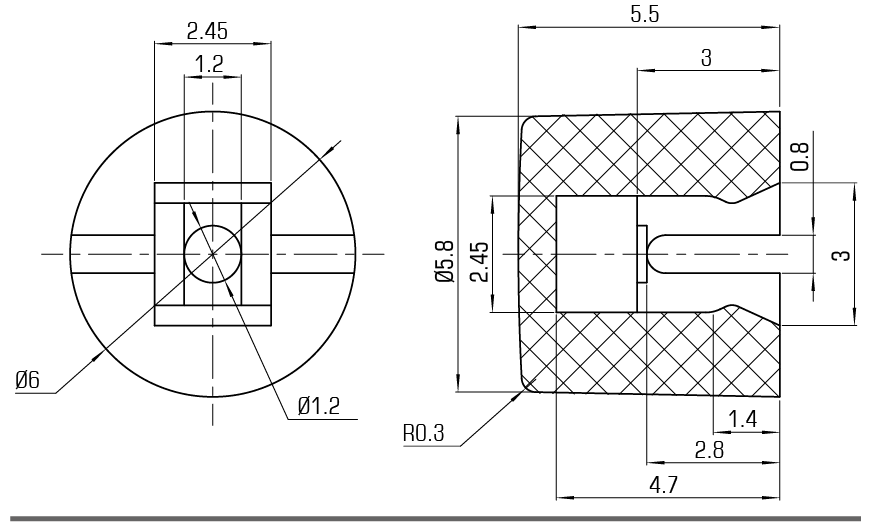 SC5鍵帽系列內孔為2.4×2.4配6×6方頭輕觸開(kāi)關(guān)